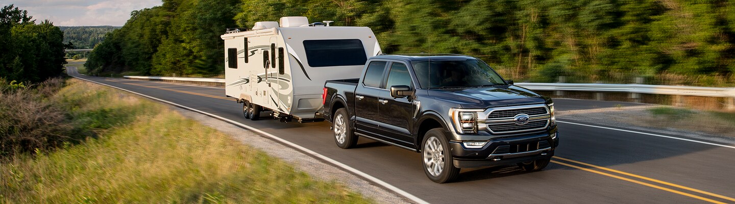 **Max towing on F-150 XL SuperCrew, 3.5L EcoBoost, 4x2, Max Trailer Tow Pkg. Not shown. F-150 Platinum, 5.5' box, 4x4 shown. Class is Full-Size Pickups under 8,500 lbs. GVWR. Max towing varies based on cargo, vehicle configuration, accessories and number of passengers. Preproduction Computer Generated Image Shown.